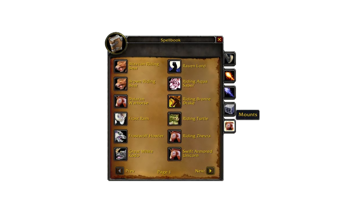 Rejoice pet collectors for your little ones will no longer have to spend their time at the bank waiting for you. New collection tab can be used to bring all of your pets with you on your numerous journeys. You heard about pulling a rabbit out of the hat. How about pulling a horse out of the spellbook? Amongst other functions, there is a mount tab where you can store all your favorite mounts.