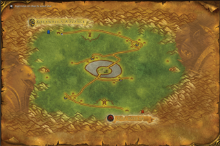 Located in the northeastern corner of Mulgore, this pass serves as a place of pilgrimage to a few spirit walkers dedicated to honoring their ancestors and as a passage between Mulgore and the Barrens, allowing a safer trip to the Crossroads for young Tauren adventurers looking to make their place in the world. This location also serves as a small quest hub to clear the Bristleback Quilboar presence found east of the pass.